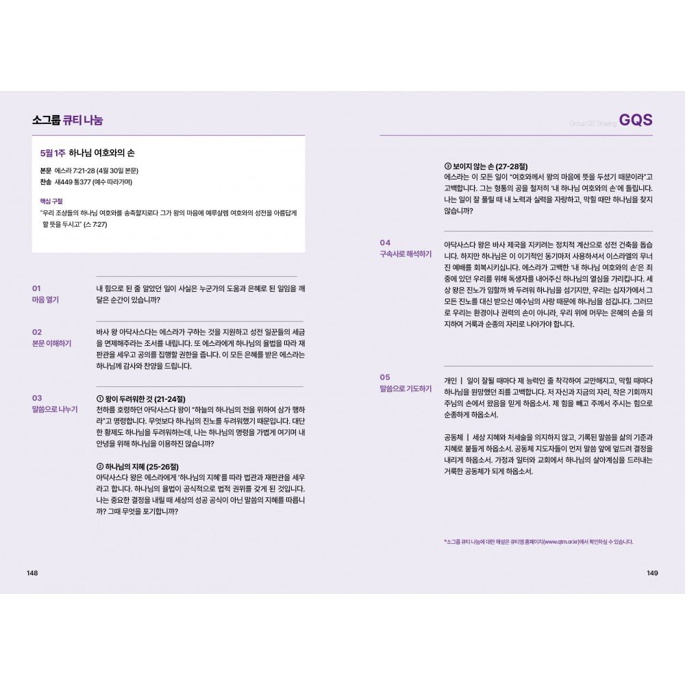 To foster deeper communal meditation, QTin includes a Group QT Sharing (GQS) section. Weekly leader guides are also available on the QTM website (qtm.or.kr).