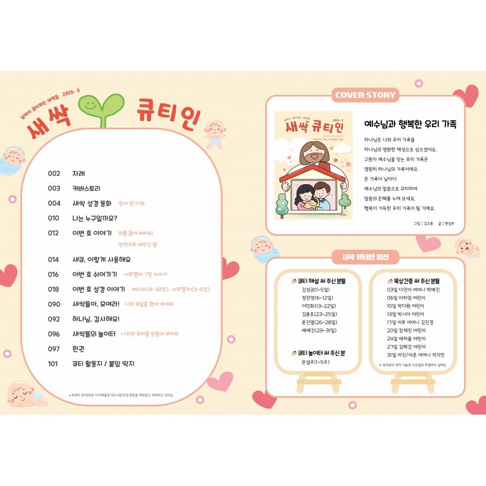 QTin Sprouts follows the key verses from “Let’s Read the Word!” in QTin, the adult devotional magazine.