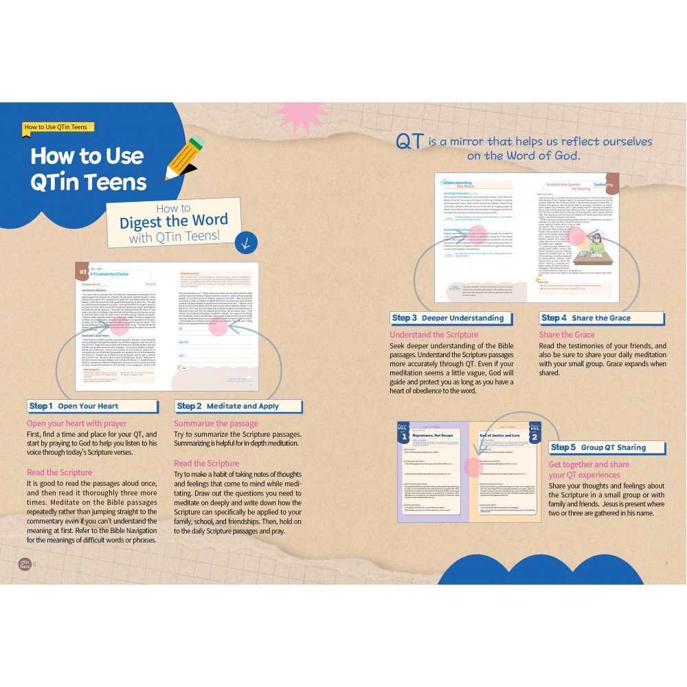 Daily testimonies of teens! Doing QT changes their heart toward God by telling a truthful life story and repenting their sin. You can read about many journeys of spiritual growth through meditating on the Scriptures among the pain in a stormy period of adolescence.
