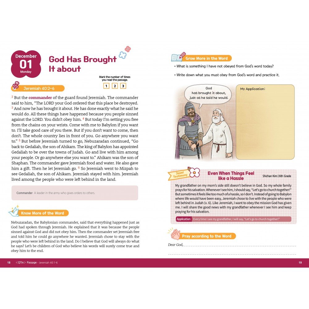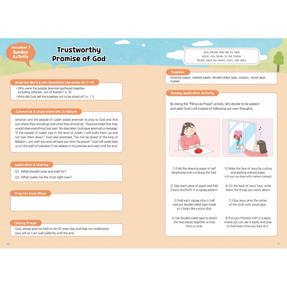 큐티 내공이 있는 10여 명의 집필진이 쓴 본문해설은 성경을 구속사적으로 이해하며, 쉽고 재밌게 큐티할 수 있도록 어린이들을 안내합니다.